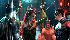 Some events in popular culture attract a lot of attention and commentary not because they are full, rich and complex, but because they are absolutely the contrary: patchy, full of holes, chimerical, never making much sense for more than a few minutes at a time. Since 1989, the Batman films have achieved the height of pop patchiness. No new entry in the series really follows on from the last. After Michael Keaton and Val Kilmer, we are on to our third star to incarnate Batman, the fairly bland George Clooney. There have been two directors so far (Tim Burton and Joel Schumacher) but a substantially different style for each film – with the art direction concept, and the balance of action to comedy, changing radically every time. And with each outing we get a new set of villains, and a new girlfriend for Batman in his daytime identity (here this thankless role goes to Elle Macpherson). There are a number of new elements in Batman & Robin to prod our collective attention, once we have recovered from the usual daze induced by the monumental sets, the blurry fight scenes, and the dizzy array of bad guys and gals with their extravagant, sometimes barely comprehensible schemes of world domination. The best of these additions are the women: the sneaky, feisty Batgirl (Alicia Silverstone) makes a late-breaking appearance among the goodies; and among the baddies, Uma Thurman is a histrionic delight as Poison Ivy, a monstrous Mother Nature born in a mulch of toxic chemicals. Gone, in this latest outing, is the pretension to Big Themes such as Batman's troubled neuroses, or the ambitious aesthetic of "modern medievalism'" elaborated in Burton's Batman Returns (1992), for me still the best film of the series. Gone, too, is any debt to the style or content of today's graphic novels such as Frank Miller's The Dark Knight Returns, which largely provided the inspiration for Burton's initial foray into this field. No, Batman & Robin is the most purely, simply cartoonish film in the series to date. A tiny bit of spice is added by words like "family" and "trust" being bandied about by the characters, and by Robin's act of teenage rebellion once he has come under the spell of Ivy. But everything is functional, mechanical and down-the-line here, with little fun, pizzazz or perversity – an impersonality embodied in Arnold Schwarzenegger's performance as Mr Freeze, restricted to the utterance of 100 lame one-liner puns about ice, coldness and freezing. As superheroes go, Batman & Co. are oddly ineffectual, earthbound figures – a problem that no film in this blockbuster series has yet managed to overcome. They lack super powers, are not much chop in hand-to-hand combat, and their handiest, most powerful technological gadget is the thingy that regularly hooks onto a nearby surface to stop them plunging to certain doom. The Batman television series of the '60s made a running joke of the fact that these heroes spent most of their time getting knocked out, tied up and left to die – but always coming up with a cornily brilliant escape plan at the next-to-last second. On the big screen, however, we expect more assertive, action-packed heroism. Lacking a good, bold narrative idea that might provide such a kick, Schumacher again beefs up everything and everyone around our middling do-gooders – sets, explosions, chases, noises, expendable side-bar characters. But such a band-aid approach leaves the series to limp along with its central problem unresolved: finding a central core of interest and intrigue that might cohere the wild flurry of diverse elements that are churned up in each new instalment. MORE Schumacher: Batman Forever, D. C. Cab, Phone Booth, The Phantom of the Opera MORE Batman: Batman Begins MORE superheroes: Elektra, Daredevil, Catwoman, Hellboy, Spider-Man, Spider-Man 2 © Adrian Martin June 1997 |