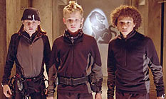 I once read a joke on the internet to the effect that the typical career path for a promising American director these days is to go from helming an edgy, independently-financed debut which makes a splash at Sundance, to a more ambitious but less successful second film and then – in recovery mode – to a modest, impersonal studio movie for kids. This is pretty much the path that Bart Freundlich has trod, from the promising The Myth of Fingerprints (1997) to World Traveler (2001) – both starring his wife, Julianne Moore – and now Catch That Kid, a spirited but also rather anonymous assignment. Certain delicious moments recall his earlier work (such as a terrific minor role for James Le Gros), but mostly Freundlich turns in a solid, professional job. In its own terms, however, it is not bad. Catch That Kid resembles a more modest version of the Spy Kids series, although its direct source is a Danish film, Klatretosen (2002). It hurls a trio of twelve-year-olds into a daring heist caper at which they prove themselves surprisingly adept. The charm of all these movies is in the way the action plot arises from – and also serves to resolve – problems or tensions besetting a family unit. Here, the trigger is the accident that befalls Tom (Sam Robards), requiring costly surgery that his family cannot afford. So Maddy (Kristen Stewart) – who is also feeling a little neglected by her career-minded Mom, Molly (Jennifer Beals) – rounds up her mates, Austin (Corbin Bleu) and Gus (Max Thieriot). They embark on a robbery which requires all their skills: Gus's mechanical grunt, Austin's computer hacking, and Maddy's winning ability to be both the chief brain and a kick-ass chick. As I enjoyed the chase scenes involving go-carts and the tender jokes about our heroes as an asexual threesome just on the verge of puberty, I fondly recalled a true pre-teen classic from the '80s: Australia's own BMX Bandits (1983). We don't make them like that anymore. © Adrian Martin April 2004 |