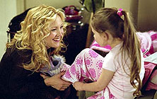 Garry Marshall's Raising Helen is in the tradition of films like Stepmom (1998) and Baby Boom (1987) that suddenly confront a modern, glamorous career woman with the mundane complications of childrearing. Helen (Kate Hudson) is an up-and-coming agent in the modelling business. When her sister Lindsay (Felicity Huffman) dies in a car accident, Helen is shocked to learn that she has been given custody of three children over the supermom of the family, Jenny (Joan Cusack). This story plays it safe at all points. For instance, Helen must swap her decadent, party-girl lifestyle for a tepid romance with a Lutheran pastor, Dan (John Corbett). But Marshall blunts the difference between these sectors of Helen's life, since Dan is meant to be a cool pastor. Raising Helen peddles a predictable moral lesson about the need for a flighty single woman to grow up and accept the responsibility of a family. But nothing in Helen's journey is particularly illuminating or even convincing. It is a flat film that never makes much of its entertainment potential. The best moments are the sibling fight scenes between Hudson and Cusack, but for the most part neither actor is stretched beyond simplistic typecasting, and Helen Mirren (as Helen's boss) is simply wasted. Only an occasional comedy of manners observation rises from the overall banality, such as when Helen reacts with horror to the prospect of moving from Manhattan to Queens: "We are not bridge and tunnel people!" MORE Marshall: The Princess Diaries 2 © Adrian Martin June 2004 |