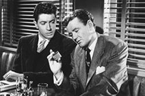 encounter between two men (Farley Granger as Guy and Robert Walker as Bruno) in