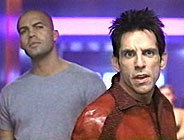 Australia's The Bank (2001) may have been the first commercial feature in the world to register the influence of Naomi Klein's book No Logo, but now Zoolander, in its own zany way, takes pop culture's anti-capitalist campaign to new heights. Star, director and co-writer Ben Stiller takes from Klein's book the thought of sweatshops across Asia providing the cheap labour for the high-bourgeois fashion industry. From this he spins an inspired fantasy. When political change threatens the status quo in Malaysia, the heads of the fashion world decide that the meddling Prime Minister has to be assassinated. Furthermore – as a conspiracy nut and former 'hand model' (played by David Duchovny) informs us – all the central political assassinations in twentieth century history have been secretly carried out in the name of the corrupt fashion business. The assassins need to be highly impressionable idiots, and this is where Zoolander (Stiller) enters the picture. A male model who is facing the decline of his stardom when measured against the hot new thing, Hansel (Owen Wilson), Zoolander is unaware that he is a human time bomb, ready to (literally) explode on the catwalk when a particular dance hit of the '80s hits the turntable. The caustic sense of humour in this often hilarious film is indicated by the fact that absolutely no character – except an intrepid investigator (Christine Taylor) from Time magazine – can actually remember the name of Malaysia, even when its future is at stake. Although Stiller's fashion jokes are as up-to-the-moment as they can be, most of the best gags here have a retro reference, somewhat in the style of The Simpsons. Film parodies include Kubrick's 2001 (1968) and the conspiracy thriller The Parallax View (1974). The climax pivots on a turntable duel between Frankie Goes to Hollywood's "Relax" and Herbie Hancock's "Rockit". Breakdancing makes several appearances. David Bowie gets the biggest cameo. Stiller is a talented director (Reality Bites [1994], The Cable Guy [1996]), and he works hard to maintain the comic energy here. The film is full of lovingly mocked-up inserts – ads, documentary inserts, magazine covers, fashion shoots – and some terrific running gags, such as the inability of these models to switch on an iMac computer. A trippy orgy scene serves to demolish the film's obligation to include a little romance and a personal journey or two. Not every joke works, of course. There are a seemingly infinite number of attempts to raise a laugh from Zoolander's trademark pout, known as Blue Steel. Fortunately, Stiller allows generous opportunities for other performers (such as his Dad Jerry Stiller in an outrageously stereotypical role) to shine. Zoolander makes no attempt to charm its audience, but in its frenetic, strident way it is a rare treat. And time, in the form of multiple viewings, has only added to its cult allure. © Adrian Martin November 2001 |