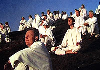 Film critics sometimes make apocalyptic pronouncements about the imminent Death of Cinema. Usually it is some hare-brained, multi-million-dollar action blockbuster from Hollywood that causes this gloomy prognostication. However, over the past few months, it has become strikingly clear which particular sort of film will really spell the end of cinema as we once knew it: insufferable movies about the Meaning of Life like What the Bleep Do We (K)now!? (2004) and Chasing God. This is a modest video production by Melbourne filmmakers, but it was shot all over the world and features a fruity Dawn French on voice-over duty. Surviving its fifty-two minutes certainly gave me an intuition of what Eternity must be like. It is mainly a talking-heads piece, with the heads given pompous titles like The Cardinal (Francis Arinze), The Atheist (Phillip Adams) and the especially nebulous The Researcher (Richard Heinberg). All answer the question: does God exist? And why do we need Him to exist? Two other elements go into the standard mix for films like this. Firstly, selections from the same image-bank raided by all movies in the dire Koyaanisqatsi (1983) tradition: nuclear explosions, Nazi rallies, the teeming metropolis, etc. Secondly, supposedly timeless and universal poetic images: flowers blooming, bells ringing, water streaming. But this film, like What the Bleep, adds a third element: an outright bit of fiction, or at least some television-style 'dramatic re-enactment'. Memorable moments in this vein include a violent, disturbed fellow drawing a gun in a public place, and a fanatical suicide bomber preparing to press the button as indifferent commuters stream by. To be fair, Chasing God might be bearable as filler on an episode of the religious program Compass on Australian Sunday night television, or as a discussion-starter in a secondary school classroom. Even in those contexts, however, I would advise the filmmakers to lose the final, inadvertently spooky montage of all its participants looking soulfully into the camera lens. © Adrian Martin August 2005 |