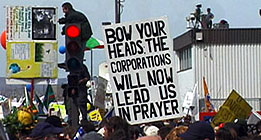 In the closing minutes of this epic, sobering documentary from Canada, left-wing celebrity Michael Moore articulates the challenge that filmmakers Mark Achbar and Jennifer Abbott face. Will they manage to make a serious, political movie that can send people out of the cinema with a compulsion to take some action in the social sphere? Or will their effort simply be consumed like any other cultural commodity, quickly forgotten or merely sequestered away as an intellectual experience? Even the audience applause which greeted the session I attended is ambiguous in this regard. Thirty to forty years ago, at the height of militant cinema in many countries, that dilemma was put slightly differently. Activist filmmaker-theorists like Edouard de Laurot (Black Liberation, 1967) explored ways in which to leave a movie open enough for the spectator to want to finish it – in reality rather than on the screen. The trap, as it was perceived back then, was to make a political movie too entertaining and spectacular, and so self-enclosed that its message – whether rousing or tragic – simply left the viewer depleted, disconnected from reality. The Corporation hits its audience like a sledgehammer. It has a lot of harsh, troubling news to impart about the state of the world, and it does so concisely and sharply, with cumulative force over its two and a half hours. Is it indeed too powerful to wield its desired, galvanising effect? Achbar and Abbott are acutely aware that their central thesis, adapted from Joel Bakan's book The Corporation: The Pathological Pursuit of Profit and Power, tends towards an inevitably pessimistic conclusion. Modern corporations have developed without significant legal restrictions or an ethical conscience. Their appalling industrial practices have laid waste to the Third World, while their insidious marketing campaigns have penetrated the mind of the smallest child. The Corporation finally puts its faith in some recent manifestations of people power – with heavyweight celebrities including Moore, Noam Chomsky (subject of Achbar's previous Manufacturing Consent [1992]) and Naomi Klein stoking this optimistic analysis. But, in this film-essay where governments seems so insignificant that they are hardly mentioned, it seems like the most momentous change will only come from the rare moments of authentic corporate self-criticism, such as that launched by Ray Anderson, CEO of Interface – who emerges as one of the most memorable and remarkable figures in this documentary. Conceptually, this film strays all over the map. Economic analyses of corporate power do not always interlock seamlessly with the Kleinian evocation of a logo-branded world, or psycho-semiotic theories of how mass media influence us to consume. Yet this mixed-mode of investigation tends to work well over the long haul of the piece. The form of modern documentary is increasingly tending towards a careful mimicry of both computer technology and DVD presentation. Hence the constant interruption of a mock menu in The Corporation, suggesting dozens of other related case studies that could be perused as files or options. (Menu-tricks in necessarily un-navigatable big screen experiences tend, unfortunately, to come over like boorish, pedantic lesson plans – as in Thom Anderson and Noël Burch's otherwise invaluable Red Hollywood [1995].) The Corporation employs a slick, rapid style that is becoming de rigueur in contemporary American documentaries. Extensive use is made of clips from television, film and especially the wondrous promotional and educational shorts (courtesy of the Prelinger Archives) made by the corporations themselves. There is a note of facile humour and opportunistic satire involved in the recycling of such old, scratchy promotional material: of course, the cheery smiles, neat haircuts and smart suits of yesteryear look ridiculous now, and the calm recitation of numbers, facts and statistics today seem sinisterly prophetic. But does this really constitute a cultural or political analysis? It's the same when, in Fahrenheit 9/11 (2004) or its ilk, any politician unwise enough to fondly remember in public a childhood viewing of Daniel Boone or John Wayne is rewarded, for his trouble, by immediate juxtaposition with some audiovisual sample of idiot-grinning, Hollywoodised pioneer-Americana optimism. The Corporation mercifully stops short of the all-out, satirical comedy that Michael Moore constructs from the montage of news footage, old movie clips and sardonic voice-over commentary. Nor does it attempt the sort of one-on-one, feral interrogation of people familiar from the political documentaries of Errol Morris or Claude Lanzmann. Instead, Achbar and Abbott replay a disquieting 'distancing effect' from classic militant cinema. In a scene showing pleasant footage of innocent children singing at a party, they remove the song "Happy Birthday" from the soundtrack – because even that daily pleasure now comes with a whopping great corporate price tag. MORE political documentary: Life and Debt, Power and Terror © Adrian Martin September 2004 |