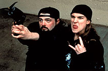 I was a fan of Kevin Smith's low-budget debut Clerks (1994), with its rough mixture of minimalism, vulgarity and lovable human eccentricity. Better resourced on his second film, Smith tries to blend the proletarian humour of Clerks with the pastel colours and beautiful people of an episode of Beverly Hills 90210. The rather uncertain and variable result is Mallrats. Like Clerks, Mallrats follows the dissolute days and nights of two friends, T.S. (Jeremy London) and Brodie (Jason Lee). Both of them bust up with their girlfriends at the start of the story, and spend the rest of their time at the mall concocting fanciful schemes of revenge and reconciliation. Mallrats is at its best when its characters just talk, trading quasi-screwball volleys about various base bodily functions. Many low jokes at the expense of smarmy yuppies and a fascistic mall entertainment manager (Michael Rooker) are less sparkling. And the film's attempts at non-verbal, burlesque humour are extremely weak. There is an unmistakable artlessness – a flat, awkward, ugly quality – that permeates much current American cinema of an independent persuasion. Hal Hartley turns such artlessness into a distinctive style, but Mallrats mostly looks like a poorly realised telemovie. Smith dedicates this opus to the grand, raunchy teen movies of the '80s (such as Sixteen Candles, 1984), but he has much to learn about what made those films fire. I could forgive Clerks its outrageous sexism – not every viewer did – because that film had such tremendous energy, and a certain guttersnipe charm. In Mallrats the sexism remains but the energy and charm have fallen out considerably. Tellingly, it is only the guys from Clerks (including a pretty boring character played by Smith himself) who come up for recycling here. But these judgments may be too harsh, considering that I laughed almost continuously throughout Mallrats. One thing is certain: the film's constant string of pop culture references (everything from Star Wars to the Magic Eye craze) is spot-on and hilarious. And that maestro of Marvel Comics, Stan Lee, supplies the best celebrity cameo seen on screen since Love and Other Catastrophes (1996). MORE Smith: Chasing Amy, Jersey Girl © Adrian Martin August 1996 |