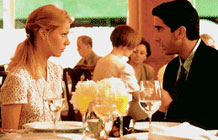 It is slightly alarming when movies on the big screen begin to resemble episodes of television situation comedies in almost every particular. This is especially true, at present, of the romantic comedy genre. Films including If Lucy Fell (1996), She's The One (1996) and The Pallbearer exhibit a flat, artless, brittle quality. The Pallbearer takes David Schwimmer from the popular television series Friends and tries to accommodate his persona within a classic plot situation: a fey hero is mistaken for someone else, and then keeps compounding the problem by playing along with the initial masquerade. It is the type of knotty, excruciating premise which Preston Sturges handled best fifty-two years ago in Hail the Conquering Hero (1944). Here, sad-sack Tom (Schwimmer) is wrenched out his sheltered existence as a Momma's boy when he is contacted by the grieving Ruth (Barbara Hershey). Her son has just died and she believes (mistakenly) that Tom was his best friend. So Tom becomes a pallbearer and eulogist at the funeral. More significantly, Tom tangles intimately with two women: Ruth, and his old schoolmate Julie (Gwyneth Paltrow). With an evident nod to The Graduate (1967) and Spanking the Monkey (1994), the film steers Tom through this difficult and supposedly thrilling rite of passage. The film strains to have this prick-hero make it up to all the women for his sins, via various selfless acts that simply go on and on. Only then, naturally, can he find himself. Romantic comedies always raise the question of chemistry between the leads. Both Schwimmer and Paltrow are charming presences, but they cancel each other out because their energy is so similar. Both are pouting, mooning, teary, withdrawn souls – and there is just no spark of any sort between them. The Pallbearer is an extremely dissatisfying movie. Debuting director and co-writer Matt Reeves has little control of nuance, timing and mood. Secondary roles such as those given to Michael Rapaport and Toni Collette are insubstantial or just plain irritating. And every potentially complex and intriguing emotional issue which the film raises is dropped or fumbled almost instantly. © Adrian Martin November 1996 |