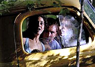 There are some films in which the characters simply do not matter. This is especially so of many slasher horror movies, which work on an almost mathematical principle: one by one, the misfortunate or plain-stupid victims are gorily dispatched by a lurking killer or monster. It is useless to decry Wrong Turn as a derivative, predictable, genre movie with cardboard characters played by glamorous teen actors. It does not pretend to be anything else. What counts is the skill and verve with which it is put together and, on this level, it is the best horror movie since the similarly underrated Jeepers Creepers (2001). Chris (Desmond Harrington) and Jessie (Eliza Dushku) head up the pack of young things who find themselves stranded in a wild countryside. The uglies who stalk them (who have names like Three Finger and Saw-Tooth) may be the result of the government's genetic experiments – this detail is jammed into the images flashing by under the credits – but their role is strictly functional: they cackle, and they kill. This is the third film from director Rob Schmidt, whose previous Crime and Punishment in Suburbia (2000) was an ambitiously intellectual teen movie scripted by Larry Gross. Wrong Turn is clearly a craft exercise for him, and he makes the most of its pure-cinema possibilities. What's impressive about this film is its use of nature and landscape. It totally immerses us in the thick of things, using angles and lenses cleverly to maintain our spatial disorientation. Moments of tension involving heights and distances are extremely well rendered. Every hidden rope or trap registers as a shock. Wrong Turn is destined to quickly become DVD fodder for horror aficionados. But, in its brief moment on the big screen, it is worth savouring for its skill and panache. © Adrian Martin August 2003 |
