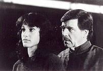 Docteur M, a lavish international co-production, is not a terribly successful enterprise, but it's certainly an oddity. Claude Chabrol, who emerged with the Nouvelle Vague of the late 1950s, is best known and respected for his intricate, subtle thrillers like Le Boucher (1969) and Violette Nozière (1978). Docteur M, like Chabrol's other international efforts (including the dismal Quiet Days in Clichy [1990]), is a crazy patchwork of languages, accents, acting methods, plot intrigues and extravagant stylistic flourishes. Chabrol's artistic motivation is rather grand – to pay contemporary homage to the great German director Fritz Lang, and his magnificent series of Dr Mabuse films (1922, 1932 and 1959). Lang's Mabuse was a sinister, invisible figure who ruled others through a deviously manipulative use of the new electronic media – particularly radio and television. Chabrol's villain (played with unbelievable hamminess by Alan Bates) owns a television channel, a private nightclub, a sinister health resort and a personal army of chic assassins. His mad plan is to induce the world, via hypnotic auto-suggestion, into a frenzy of mass suicide. The film is full of portentous remarks – about beauty and death, dreams and reality, consumer society and the ex-Berlin Wall – that never take root in the drama. And Chabrol's key visual metaphor – a group of black-clad punks thrashing wildly to the gloomy strains of a band called Mekong Delta before video images of the Holocaust – is pretty laughable. But Docteur M, closer to the demented pulp poetry of Larry Cohen's Q – The Winged Serpent (1982) than the sophisticated sci-fi of Blade Runner (1982), has enough wit, drive and invention to be worth a look. MORE Chabrol: L'Enfer, Madame Bovary, La Cérémonie © Adrian Martin May 1993 |