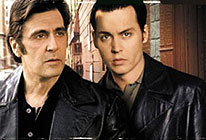 The moment in Donnie Brasco where the whole movie suddenly makes sense and comes together is also the very last line of the film. In these last seconds, a woman speaks from off-screen to her undercover cop husband (Johnny Depp), her words forming a simple, everyday phrase: "Let's go home". But those simple words bring out the most vacant and haunted expression you've ever seen on the face of Depp, and you know straight away that this guy is lost – that, in a deep sense, he'll never find his way home. Let me linger on this phrase: let's go home. It occurs frequently in the final scenes of films, particularly American films. We all know The Wizard of Oz (1939) and its lesson, "there's no place like home" – an iconic film whose apparent certainties have been dug into, and overturned, by Salman Rushdie in his BFI Classic monograph, and by Australian filmmaker Jackie Farkas in her absolutely devastating short The Illustrated Auschwitz (1992). Then there's the classic Western by John Ford, The Searchers (1956), which ends with John Wayne sweeping up Natalie Wood: she's been captured and made over by Indians, and – as many critics have said down the years – you don't know for a second whether he's about to kill her or kiss her. But what he says, after that breathtaking, ambivalent pause, is the reassuring phrase: "Let's go home, Debbie". Something similar is said at the end of one of the many contemporary movies that pays homage to The Searchers: the very tough Robert de Niro comedy Mad Dog and Glory (1993). In a broader sense, it is easy to see how many films play on the incredible tension between home – as the safe place, the resting place – and everything that is not home, that whole wide world of danger, adventure, risk and desire. Lesley Stern, in her book The Scorsese Connection, calls this the dialectic of home and away, punning on the title of a famous, homely Aussie television soap. Many movies start and end with the static security of home, while in the middle comes the roaming, and the trouble and delight that come with roaming. (Cue a DJ battle of two very sad and wistful tracks: Leonard Cohen's setting of Lord Byron's "Go No More A-Roving" against Nick Cave's definitive gesture of irony, "Right Now I'm A -Roaming".) There's no story without the roaming; but equally there's no peace without a home base, no redemption without the drive to get back home. Then there are films where you start from home, but you never get back there. Or if you get back there, it's in flames, or being taken apart, or it's empty. Such films can be bleak, and extremely unsettling in a literal sense. John Cassavetes' Husbands (1970), for instance, where three guys tear off together to London for a wild weekend, get very drunk and screw around; the movie ends with a simple but devastating scene of Ben Gazzara limping up his suburban family driveway as his son whines "Mom's been cryin', and boy, you're gonna get it!" Or the films of Abel Ferrara which almost always start with a man walking out of his front door at the start of a working day, whether he's a cop or a criminal or a movie director, saying goodbye to his wife and kids – and all these journeys end in death and desolation, with nobody getting home free. My examples might make the problem of home-and-away sound like an exclusively masculine anxiety, a 'don't fence me in' complex. But that's not so: in movies, think of Meryl Streep's acute agony about home and hearth in The Bridges of Madison County (1995), or Christine Lahti's free-fall from domesticity in Housekeeping (1987). So the idea of home is a true cultural obsession – a problem we all live, every day, across varying degrees of acute critical awareness, or vaguely disturbed waking slumber. Strangely enough, if there's one particular plot formula within popular cinema that triggers an especially agonised reflection on home and its discontents, it's the undercover detective plot beloved of television cop shows and crime fiction of all varieties. Many undercover stories are completely mild and routine. These are mild dress-up fantasies, sometimes involving the thrill of crossing the tracks of social division: a person disguises himself or herself, and enters a world that is in every respect antithetical to their normal world. So the placid wife gets to play a hooker, or a staid guy gets to run with a street gang. Television cop shows are full of these mildly titillating and suspenseful stories of law-and-order masquerade. But there also some very intense dramas of undercover disguise on the big screen, where it seems that everything is at stake – not just a particular murder case or crime racket, but the identity, the very selfhood of the one who is undercover. Even if they do make it back home by the final scene, the big question turns out to be: exactly who are they, now, after their transformative adventure in the underworld? Films such as William Friedkin's unfairly maligned Cruising (1980) – where Al Pacino goes undercover in a gay leather subculture – give these dramatic questions a slow, solemn, almost abstract grandiloquence, as if what we are witnessing is some apocalyptic twilight of the gods, not just the story of some guys in a ghetto or barrio. Donnie Brasco starts right in at this high pitch. The credits are plastered over with broody still images of Johnny Depp's sad, searching eyes. It's a slightly overwrought effect, but it certainly alerts you to the film's intentions. Director Mike Newell's big hit was the crowd-pleasing confection Four Weddings and a Funeral (1994), but Donnie Brasco takes him back to the dark, nihilistic terrain he explored in Dance with a Stranger (1985). Newell has a fondness for zombie-type characters – sleepwalkers who implode in a crisis, and who walk blankly through a scenario littered with murders and immoral and amoral actions of various shades. He is an interesting mixture of British and American cinema impulses: his stylistic