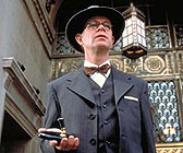There is a deeply embarrassing scene in Focus that appears to synthesise the worst moments in every student film ever made. Lawrence (William H. Macy) is suffering inner angst while riding a train. His reflection in a dark window elongates into a Munch-like manifestation of horror. This is reject-shop Expressionism. Lawrence's problem is that, in 1940s Brooklyn, he is suffering the effects of growing anti-Semitism – even though he is not Jewish. In fact, in his job as a personnel manager in a grey, suburban firm, he even enforces the management's implicit anti-Semitic policy. But when Lawrence loses his position, he is propelled into a new and confronting consciousness of social inequality. Focus is adapted from Arthur Miller's first novel. Even though the book predates his famous relationship with Marilyn Monroe, it is easy to see that screenwriter Kendrew Lascelles has projected some of Monroe's image and personality into the character of Lawrence's comely wife, Gertrude (Laura Dern). However, as always in Miller (The Crucible, 1996), the overlaying of political and sexual themes is murky, and the filmmakers do nothing to iron out the unresolved contradictions generated. Director Neal Slavin is a well-known photographer, but his grasp of cinematic grammar is less than sure. Focus alternates between awfully overstated imagistic touches, and a bland, unctuous level of social-problem drama that would not be out of place in a telemovie on the Hallmark cable channel. © Adrian Martin May 2002 |