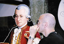 I get tired of seeing documentaries made for television on a cinema screen. In the case of In Search of Mozart, of course, there were several extenuating factors for such a displacement: 2006 marked the 250th anniversary of the great composer's birth and, for some viewers at least, the music is going to sound much better through public speakers than through their home viewing rig-up. Mozart buffs will undoubtedly enjoy this well-researched, painstaking account that runs for over two hours. It aims to correct the popular myths and misunderstandings perpetuated by the success of Amadeus (1984), and to delicately place all known facts about this precocious genius – including his taste for toilet humour. The most revealing and likable aspect of the footage that director Phil Grabsky has collected is the abundant evidence of how top performers (including Angelika Kirchschlager, Lang Lang and Janine Jansen) lose themselves in the joyfulness of the music. At moments, the camerawork recaptures the sensation of being "inside the music" that Jean-Luc Godard immortalised in the string quartet rehearsal scenes of Prenom: Carmen (1983). In a somewhat plodding and conventional way, there are really only three major elements in In Search of Mozart: talking heads (some quite engaging, such as Jonathan Miller), performance snippets, and archival photos – the same, very few archival photos that we have seen before and will see here again and again, with cheesy pans and zooms across their surface to "animate" them. The "in search of" title cues another conceit: Grabsky physically "retraces" the path of Mozart and his family across various European cities. This means, in effect, that there are many shots of cars on modern-day highways, and that whenever there is a reference in the voice-over to women or children, we will see contemporary footage of women and children in the streets, waving, laughing, eating, etc. This device quickly becomes wearisome. One might have hoped for a stronger, more political reading of Mozart's operas, rather than the endless harping on the complexity of his genius and his equal ranking with Shakespeare. Finally, however, the film is mercifully not a genuflection in the church of high culture; it brings the spirit of Mozart and his achievement alive as well as any formulaic television doco can hope to do. MORE Grabsky: The Boy Who Plays on the Buddhas of Bamiyan © Adrian Martin February 2006 |