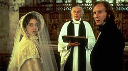 There are certain films which are lacklustre in almost every department except one: the story, particularly if derived from a much-loved novel or play, which retains its essential magical, resonant ingredients. This is definitely the case with Franco Zeffirelli's version of Charlotte Bronte's Jane Eyre. This is a prime example of the Illustrated Classics approach to literary adaptation which film critics love to hate. Zeffirelli's direction is bland, inert, as dull as dishwater in comparison with (for instance) Scorsese's work on The Age of Innocence (1993). Zeffirelli's inexplicable choice of an airy, autumnal, over-lit atmosphere works against the more sombre, gothic aspects of the tale. To make the going even rougher, Zeffirelli and co-writer Hugh Whitemore have taken a thoroughly pre-modern approach to this adaptation – making absolutely no concession to the sophisticated, media-saturated mind-set of a contemporary audience (unlike the contemporary version of Sense and Sensibility [1995]). There is a naïve, creaky, archaic quality to this Jane Eyre, particularly when it comes to the ghostly wailings that haunt Jane's abode at night. Yet there is also something undeniably plaintive about such naïveté, and this is where the magic of Bronte's original re-enters the picture. The soulful pining of Jane (Charlotte Gainsbourg) for love and independence of spirit; sad-eyed Rochester (William Hurt) with his murky past; the gauntlet of social oppressions and humiliations that beset Jane as orphan and then governess – all of this still has the power to move and enthral. The actors are a mixed bag. Several (including Geraldine Chaplin) strut about like pompous secondary players in a bad Merchant Ivory production. Joan Plowright is commendably understated, for a change. Hurt's somewhat mannered interpretation of Rochester is the film's only slightly modern touch. Gainsbourg is luminous in her directness and simplicity – although there are so many sudden reversals of melodramatic fortune in the final stages of this story that she never really achieves the passionate catharsis that the audience longs to experience. MORE Zeffirelli: Tea with Mussolini © Adrian Martin July 1996 |