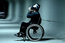 ground, the other figures roll around in wheelchairs with strange earpieces, or