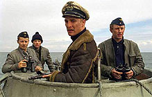 U-571 revisits the watery territory of Wolfgang Petersen's Das Boot (1981), but aligns its vision of soldiers at war with the all-American conservatism of Spielberg's Saving Private Ryan (1998). At the start, director and co-writer Jonathan Mostow (Breakdown, 1997) seems genuinely interested in presenting both sides of a pivotal moment in World War II (here condensed from several real-life episodes). The Germans possess an encryption system called Enigma which the Allies cannot decipher. It falls to the crew of the American U-571 submarine to grab a copy of the coding machine and stop word of their manouevre reaching German high command. For a brief moment – before the machine guns, grenades and fists swing into action – the American team must pose as German, pushing forth their men Emmett (Jon Bon Jovi) and Wentz (Jack Noseworthy) as spokespersons. But there ends the intriguing, cross-cultural ambiguities of this drama. Soon, the German soldier tied up on U-571 turns out to be as sneaky and treacherous as the prisoner of war who begged for mercy in Saving Private Ryan. For the most part, this is a routine action film. A few brief moments of tension aside, Mostow presents the American crew as an infallible, crack team. Not even the fact that their submarine springs a leak the second it submerges is enough to dampen their collective spirits – after all, Commander Dahlgren (Bill Paxton) assures them: "She's old, but she'll hold!" Harvey Keitel has an underwhelming role as Chief, who offers sage advice to the new man in charge, Lt. Tyler (Matthew McConaughey): "Never say 'I don't know'!" The film is so intent, in fact, on suppressing any doubt about the rightness of this military campaign that it shoves a key, potentially painful moment of the plot off-screen during the gung-ho climax. MORE Mostow: Terminator 3: Rise of the Machines © Adrian Martin April 2000 |