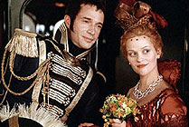 I must have been sitting near a book-group during Vanity Fair, because every forced moment of plot explication or obviously tacked-on bit of business was greeted by this pocket of the audience with knowing snorts of derision and much instant, whispered analysis. As one who has not read William Makepeace Thackeray's novel, I found myself in an even less pleasurable position. Mira Nair's film is one of those unwieldy adaptations which sails along in a vacuum. It is like an inscrutable, old narrative painting missing its accompanying, hefty caption. Only a thorough, prior knowledge of the book would make sense of some of its characters and their actions. Becky Sharp (Reese Witherspoon) is, as one Internet site refers to her, "a cold and calculating social climber". Or is she? Nair loads this grand family melodrama with the full weight of her oft-displayed political correctness. The result is confusing: Becky is, by turns, a schemer, a victim, an innocent and a survivor. Witherspoon is cleverly cast and gives the role her best shot, but she cannot bring any clarity to Nair's wishy-washy conception of the character. We watch Becky's ascent from poverty to affluence, from teaching children in the rundown home of Sir Pitt Crawley (Bob Hoskins) to dodging the favours expected of her as a result of financial aid supplied by the creepy Marquess of Steyne (Gabriel Byrne). Along the way there is the birth of love with Rawdon (James Purefoy) and the fraying of friendship with Amelia (Romola Garai from Dirty Dancing 2 [2004]). But Becky's true feelings, at any and every point, remain bewilderingly opaque. Nair has compared this project to her previous and best film, Monsoon Wedding (2001), saying that she wished to recapture the same vibrancy created by having a large number of central characters whose plot lines are always dynamically overlapping. This is wishful thinking on her part (despite the wise choice of Gosford Park [2001] screenwriter Julian Fellowes), because most of the time the various strands of Vanity Fair remain ploddingly separate. This leads to odd ellipses for the sake of hurrying things along; we seem to see only the start and end of every friendship or love affair, not the scenes that would render these emotions believable. Despite advertising her horror of the Merchant Ivory school of costume drama, Nair offers no satisfying alternative to the sturdy classicism of those films. Her idea of stylishness is to keep the camera forever gliding, tipping and scurrying after the action, an irritating affectation closer to the miscalculations of Jane Campion's The Portrait of a Lady (1996) than the touching stateliness of Martin Scorsese's The Age of Innocence (1993). Vanity Fair is further compromised by Nair's insistence on injecting a little post-colonial significance into proceedings (the credits come complete with a "salaam" addressed to the recently deceased Edward Said). But the appearance of Indian elements – especially a bizarre dance sequence featuring Becky – adds nothing. Ultimately, Nair has only her flair for social comedy to fall back on. It is undoubtedly fun to watch fine character actors, including Geraldine McEwan as Lady Southdown, sending up rotten the airs of fallen or ailing aristocrats, throwing out bon mots as they pamper their pets. But it is not enough to carry an entire film, and it falls very short of the grander, darker wisdom that filled Stanley Kubrick's adaptation of Thackeray's Barry Lyndon (1975). MORE Nair: Kama Sutra, Mississippi Masala © Adrian Martin October 2004 |