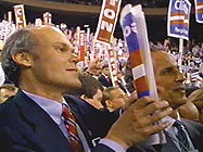 The documentary style known as cinéma vérité took off in a big way in early '60s America. Influenced by examples as diverse as the French Nouvelle Vague films and the photojournalism of Life magazine, documentary filmmakers such as Richard Leacock threw away voice-over narration and spurious ideals of objectivity and balance. Their preferred subjects became immediate, riotous events: election campaigns, executions, rock star tours. Once cinéma vérité became the dominant mode of documentary, a different sort of reaction occurred. Today, more intellectual forms such as the essay film pioneered by Chris Marker reject the freeform realism that was so powerful in the '60s. But The War Room, directed by documentary veteran D. A. Pennebaker (Don't Look Back, 1967) and Chris Hegedus, is a welcome blast from the past. The film records, with no pretence of impartiality, the tireless efforts of Bill Clinton's Presidential campaign team in 1992. Two stars emerge in the planning centre dubbed the war room, campaign manager James Carville and communications director George Stephanopoulos. Carville's intense, no-nonsense manner is particularly captivating, and his fierce commitment to Clinton is finally rather moving. As in many cinéma vérité films, political issues and contexts matter far less than the noisy, comic ephemera of the moment. Endless phone conversations, sudden encounters with strangers at a rally, odd billboards glimpsed from a moving vehicle, people yelling at the television news – it is this sort of detail which makes The War Room such an entertaining piece of reportage. © Adrian Martin December 1994 |